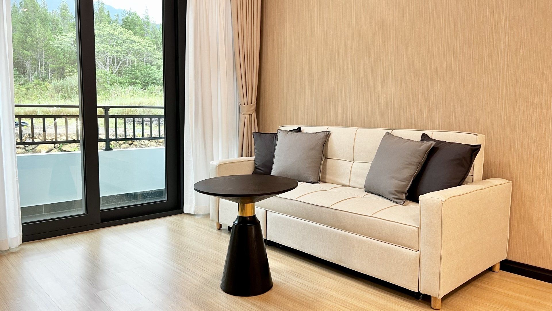 - Living Room: King Size Sofa Bed (convertible, includes pillow & blanket)